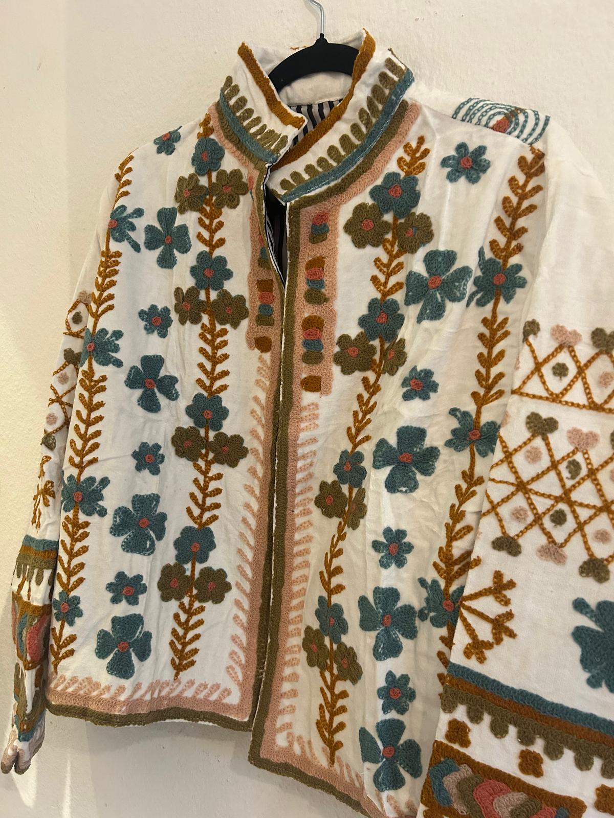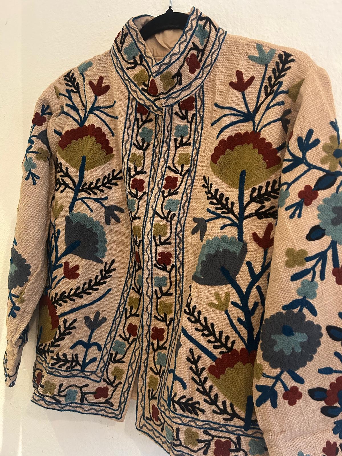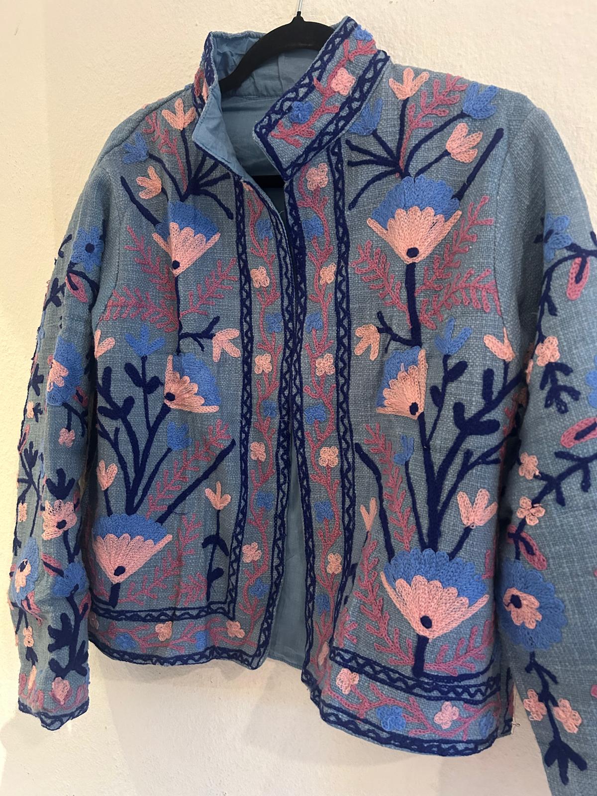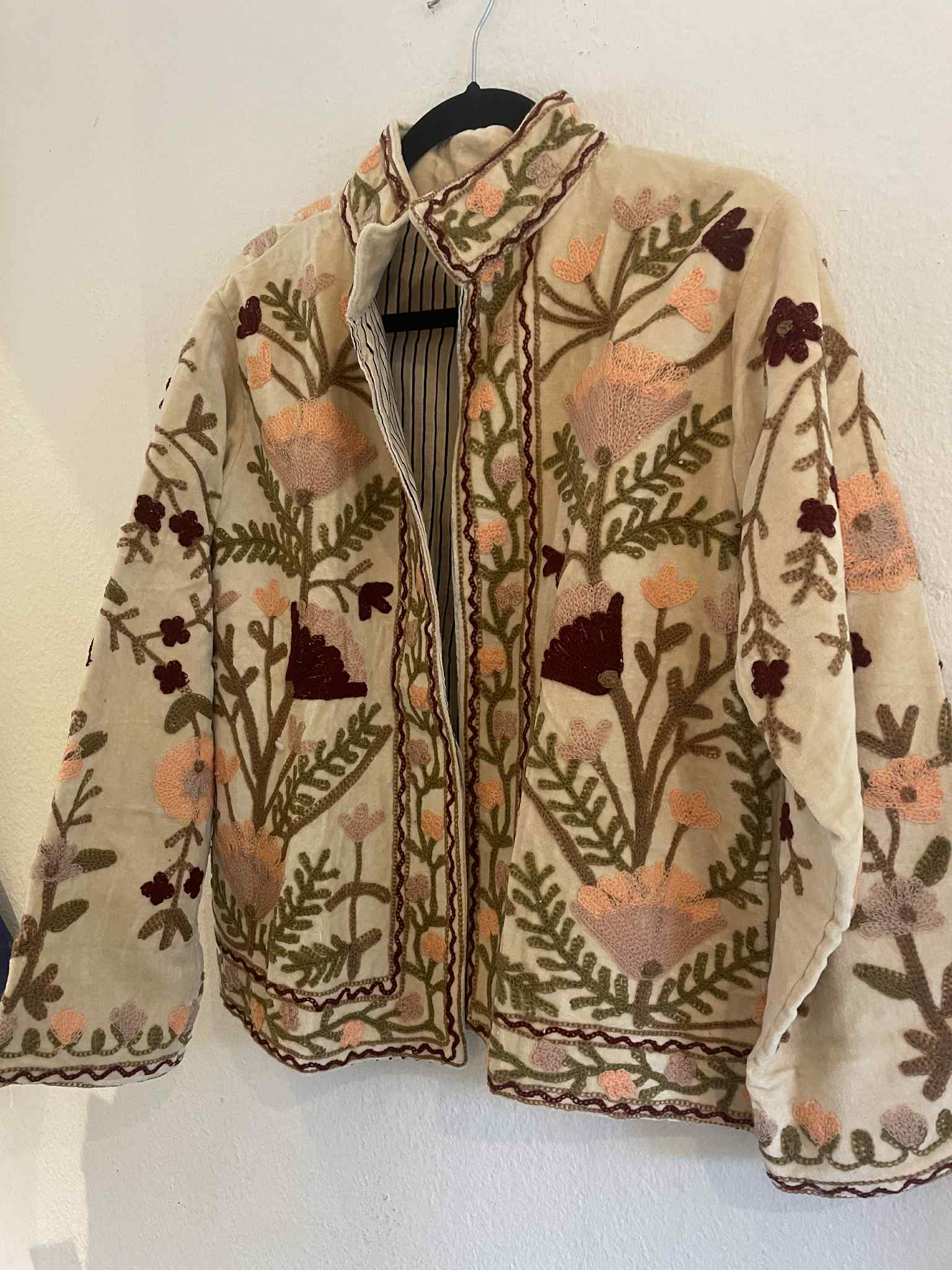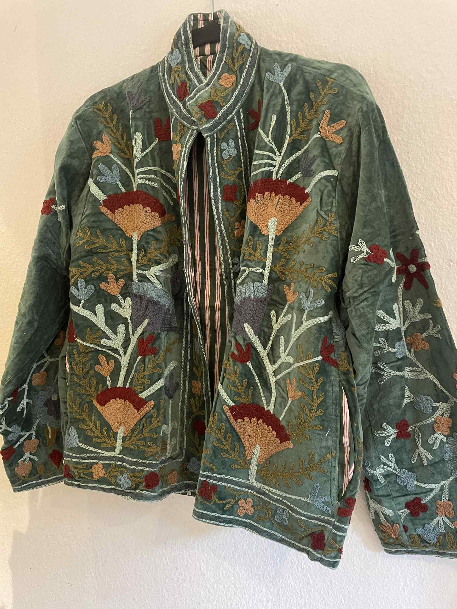 Unik quiltet (reversibel) frakke af indisk vintage sari