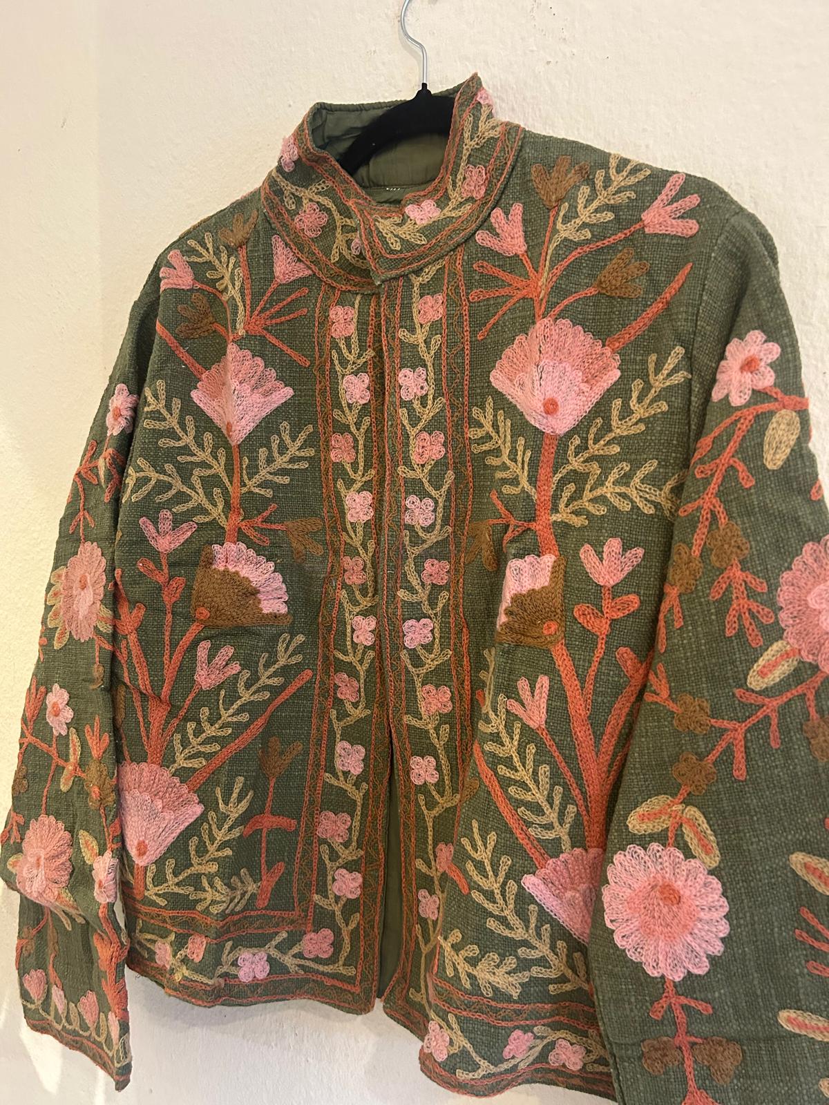 Unik (reversibel) Kantha jakke af vintage sari (M/L)
