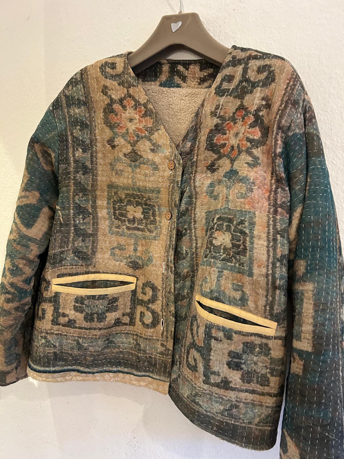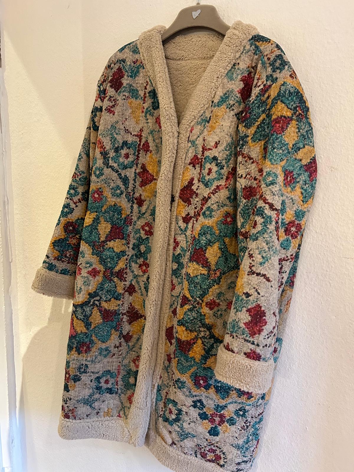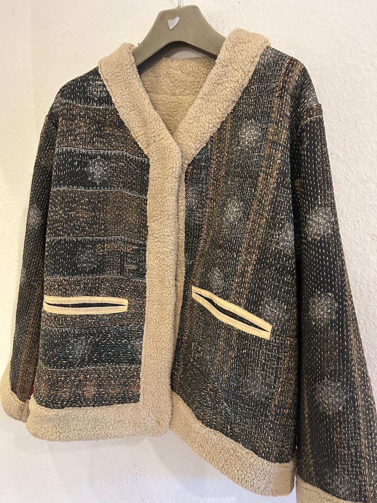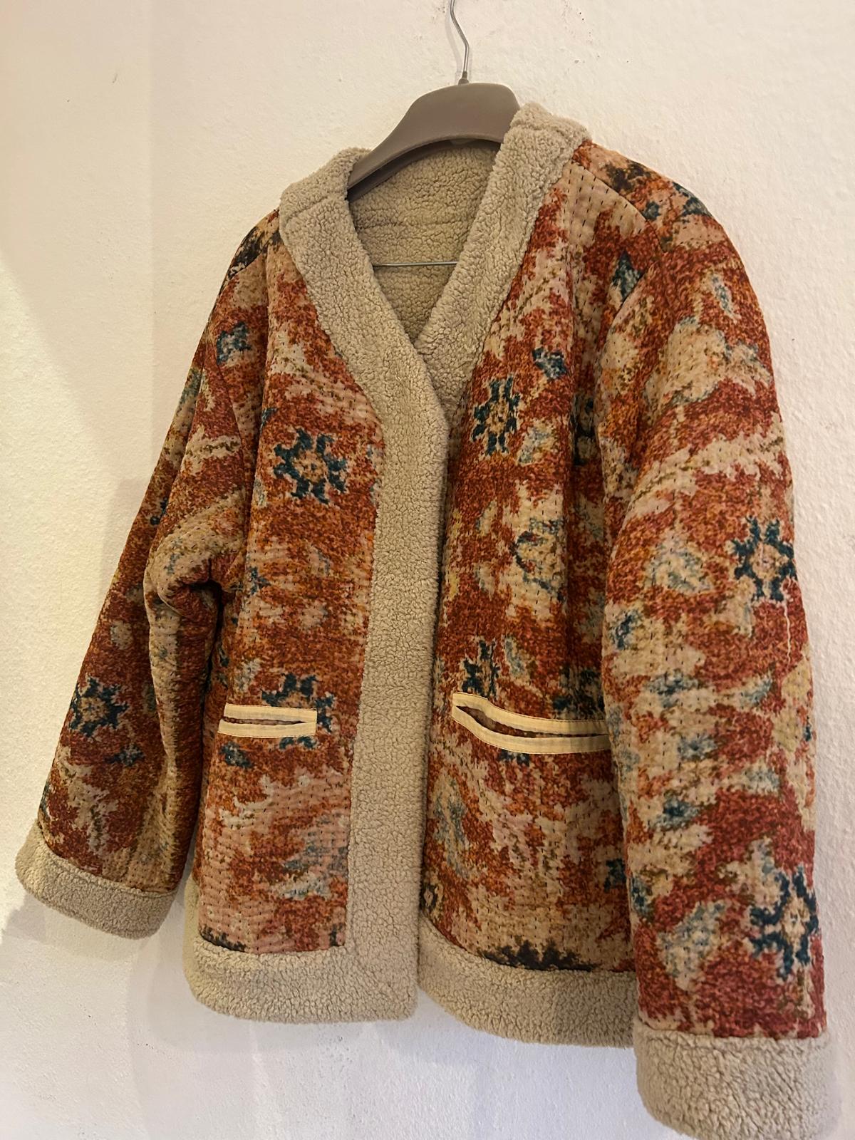 Vinterjakke af unikt Sari-stof og vendbart plysfor