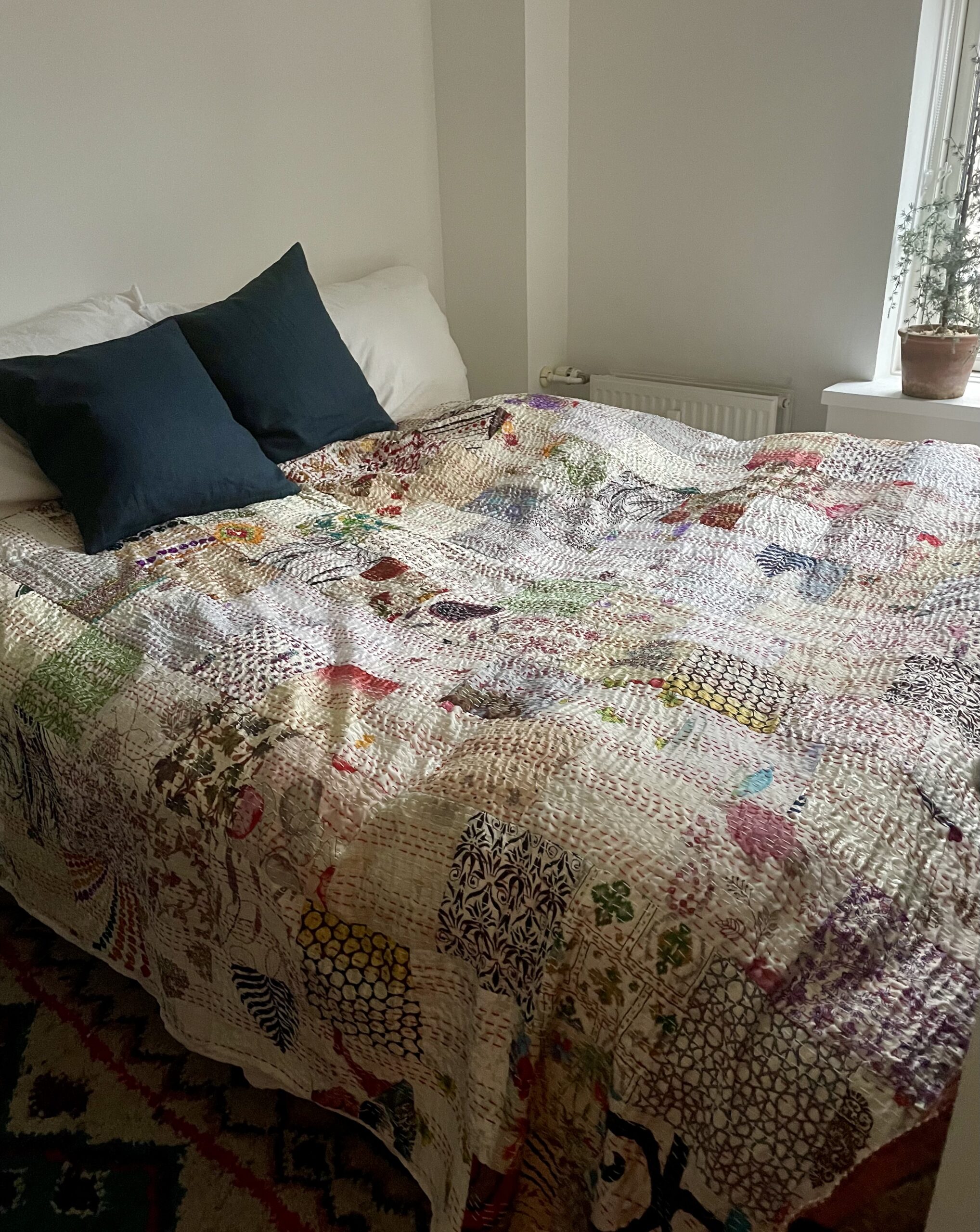 Sengetæppe af vintage silke-sari