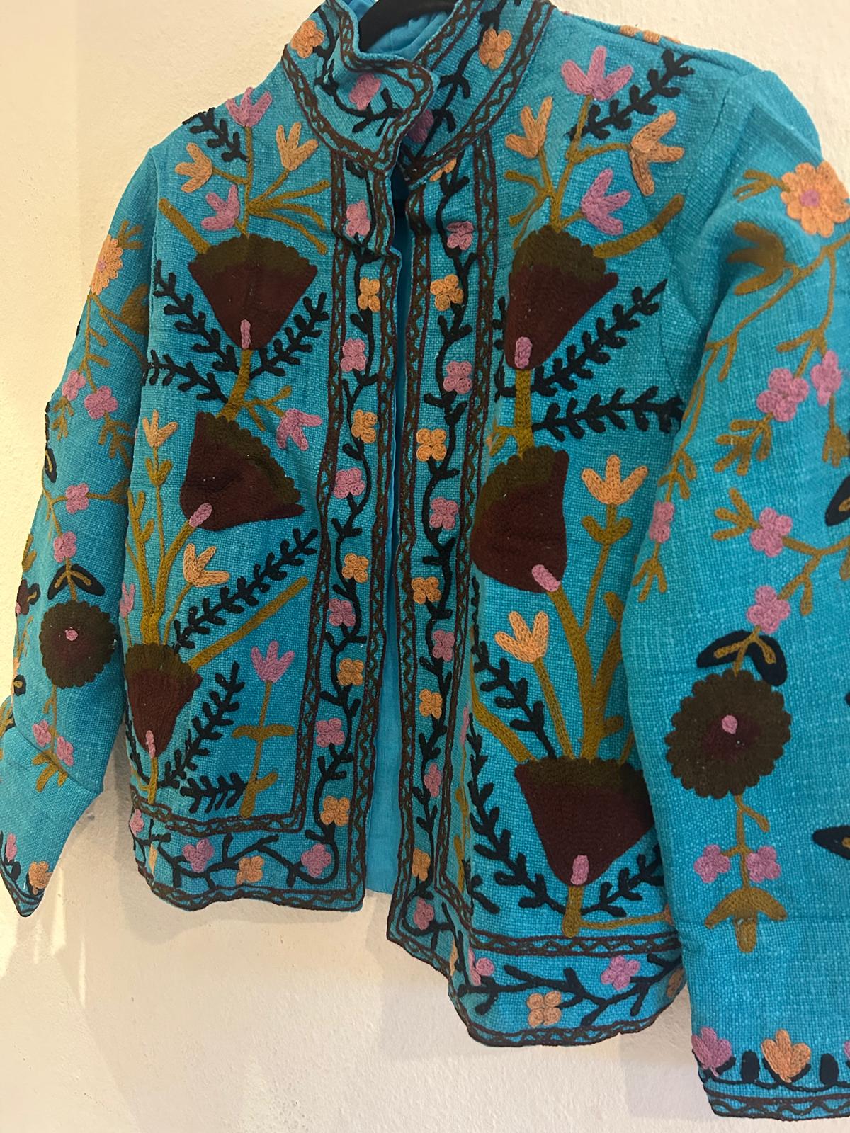 Unik quiltet (reversibel) frakke af indisk vintage sari